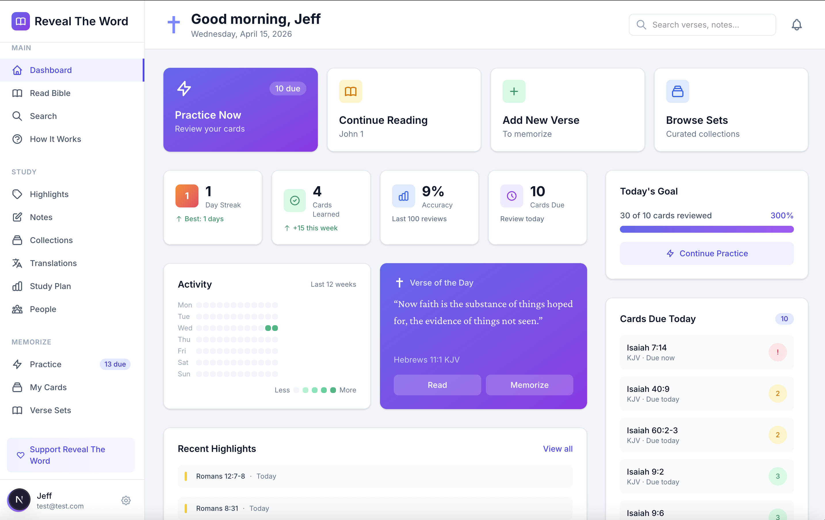 The modern Bible study app with powerful memorization tools. Read, highlight, take notes, and commit God's Word to memory with spaced repetition.